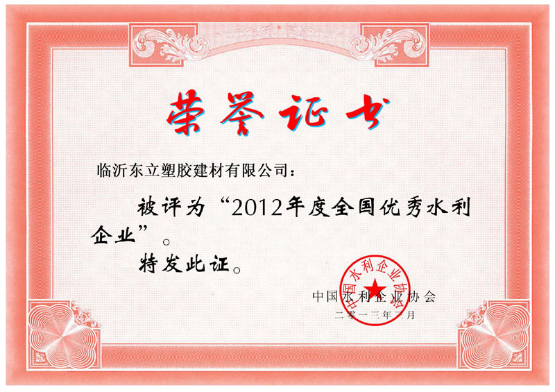 2012年度全國優秀水利企業證